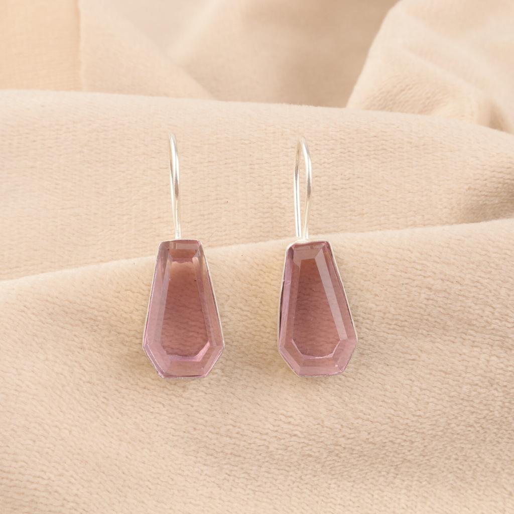 Morganite Gemstone 925 Sterling Silver Jewelry Handcrafted Dangle Earrings 1.26" EE-138-5