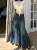 Women's High-Waist Summer 2024 Retro Washed Denim A-Line Skirt