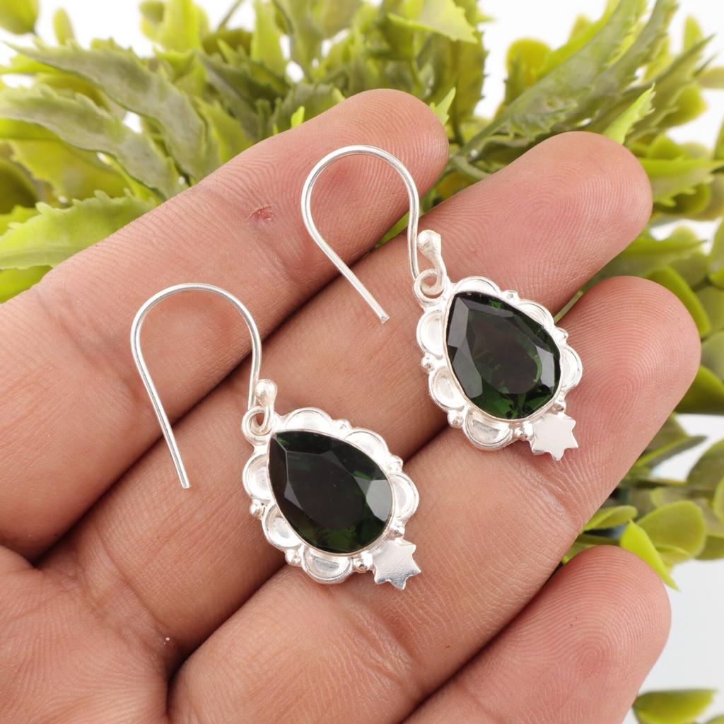 Green Tourmaline Gemstone Earrings 925 Sterling Silver Jewelry Partywear Earring EE-163-15