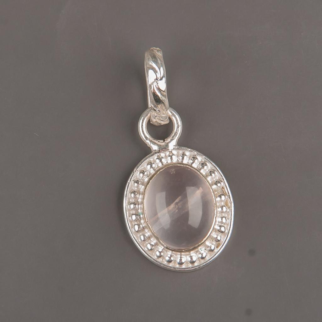 Natural Rose Quartz Gemstone 925 Sterling Silver Handmade Jewelry Pendant 1.20" PP-7-29