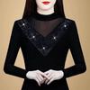 2024 Autumn/Winter Lace Rhinestone Embellished Trendy Hollow Out Blouse