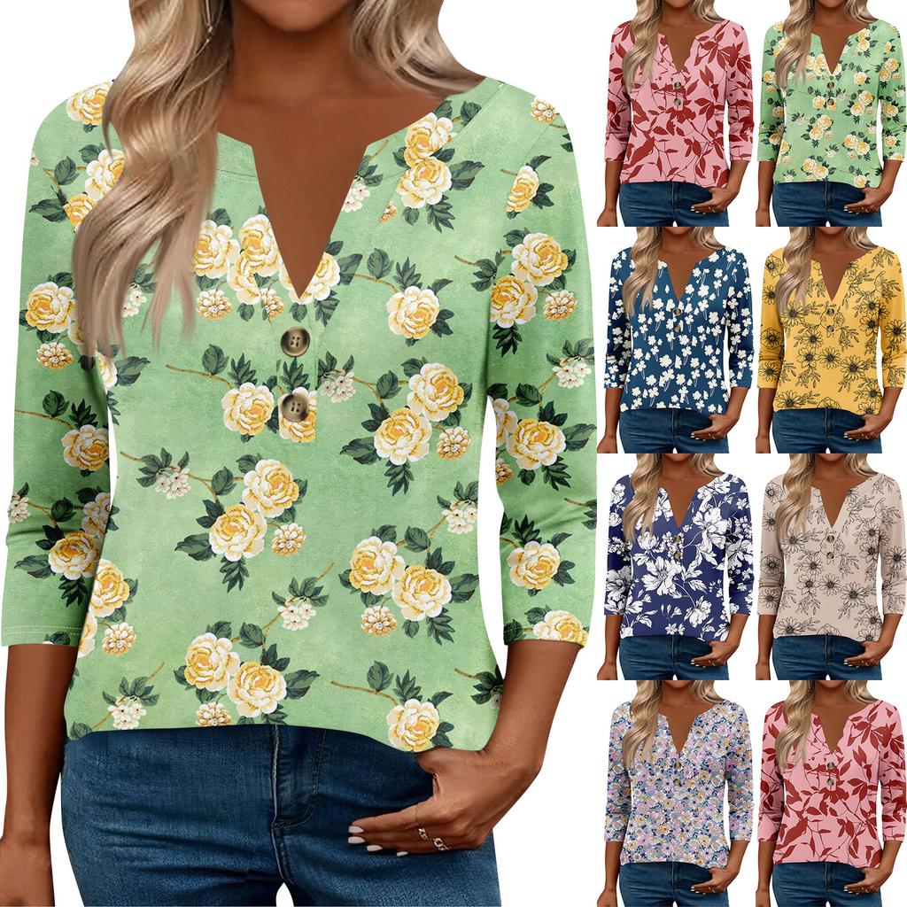 3/4 Sleeve Womens Tops For Women Henely Tops Button V Neck Loose Fit Dressy Womens Summer Tops