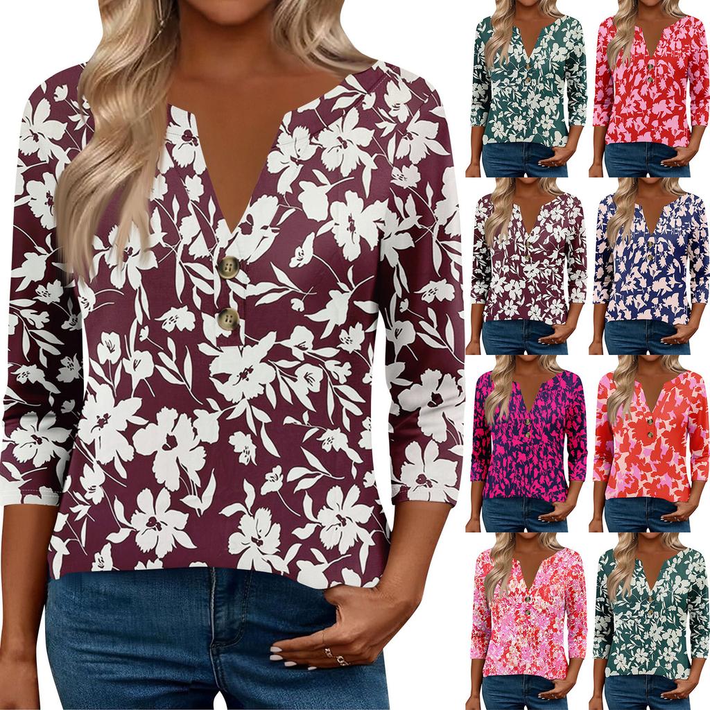 3/4 Sleeve Womens Tops For Women Henely Tops Button V Neck Loose Fit Dressy Womens Summer Tops