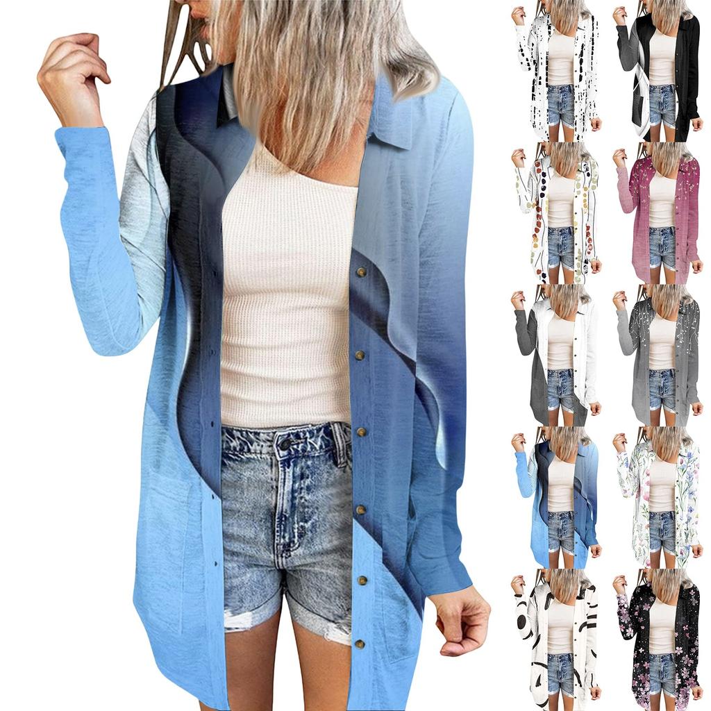 Women's Casual Fashion Floral Print Long Sleeve Mid-Length Cardigan Jacket Features: ❤ Material: Made of high quality material, suitable for everyday wear, made of soft fabric, polyester, light and comfortable, easy to dress up or take off, comfortable to wear all day long. ❤Occasion: This product is perfect for everyday, beach, outing, party, work, casual wear. "what should I wear today" dilemma. It's so random you might some extra covers! This one is available in a variety of solid colors to suit your personal . ❤It can be given to friends, family, yourself, etc., it is the best choice for gifts ❤Wash with cold water, the size will not change much, if you have any questions when choosing, welcome to consult ❤ Different monitors will have a little color difference, please don't mind Product information: : Summer Gender: Women Occasion:Fashion,Daily Blouse Length:Regular Pattern Type:Printed : Fashion, Casual Error range 1-3cm Package content: 1 X women's cardigan