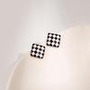 Black & White Checkered Earrings with Retro Bow and Geometric Design
