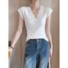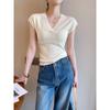 A New Summer V-neck, Fashionable and Stylish Short-sleeved, Form-fitting, Fly-sleeved Blouse with A Knitted Base Layer