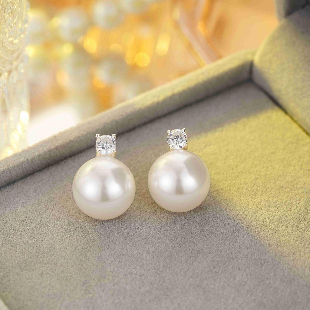 925 Silver South Sea & Akoya Baroque Pearl Stud Earrings - Perfectly Round, Lustrous, Classic Diana Style for Women
