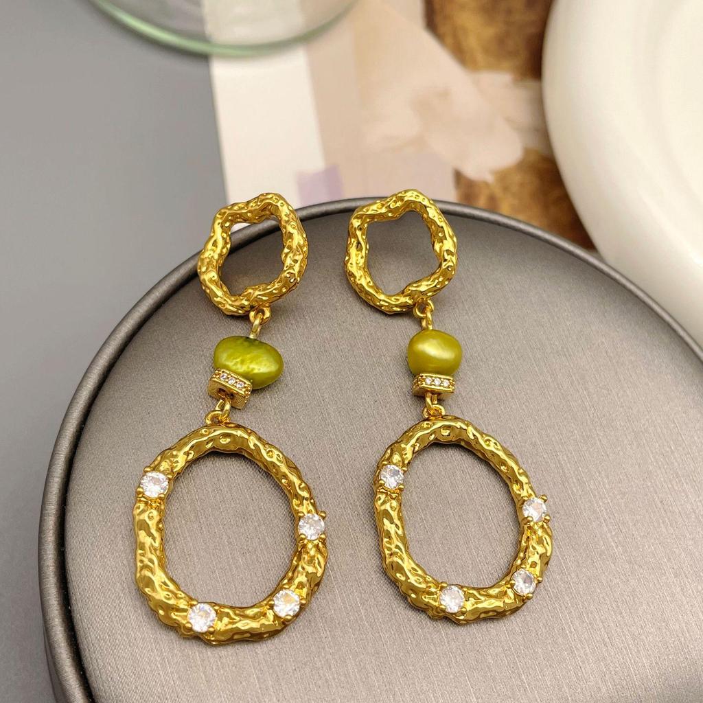 European & American Retro Hammered Double Circle Pearl Statement Earrings