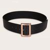 Women's Fashion Belt: Black Crocodile Pattern with Large Square Buckle