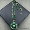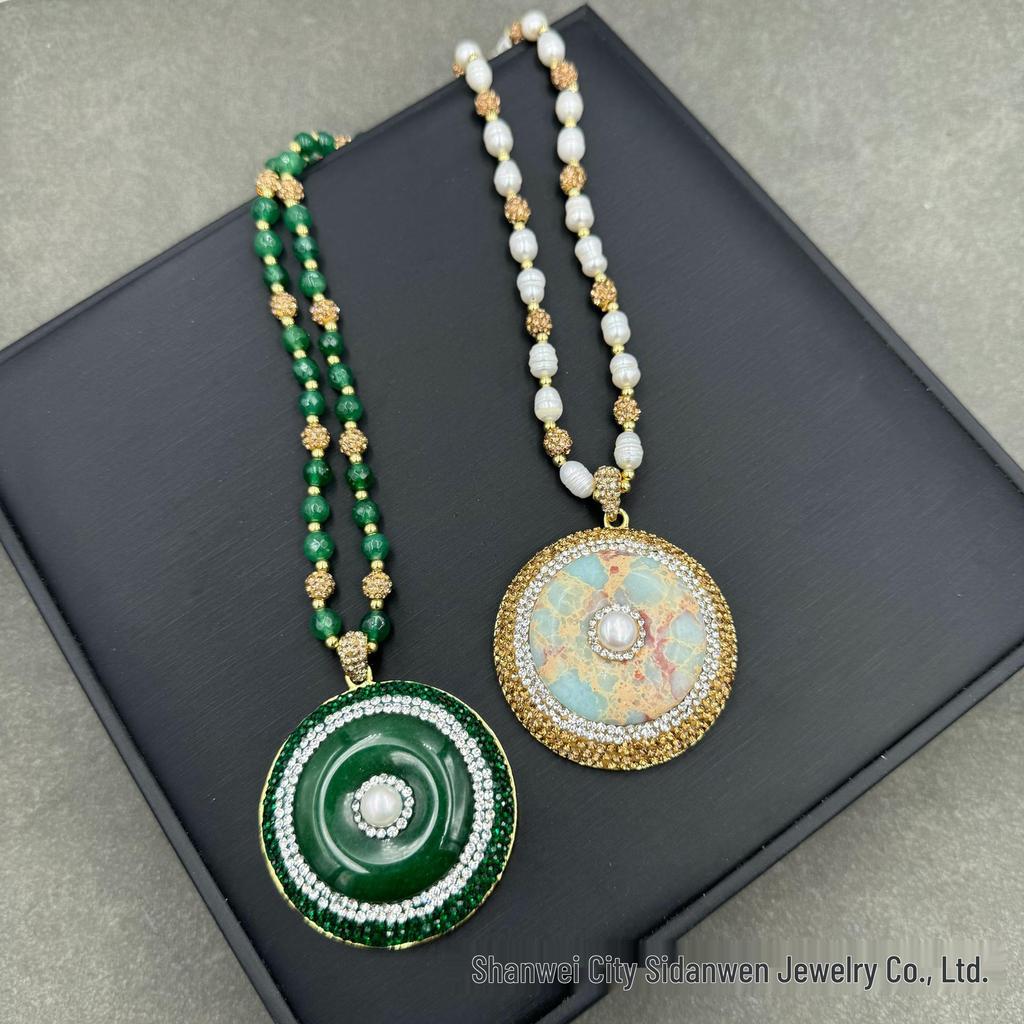 Natural Shoushan Stone Chalcedony & Pearl Necklace with Green Peace Buckle Design