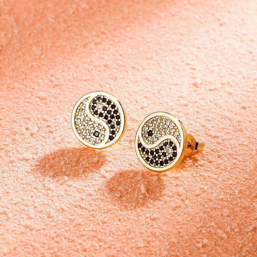 Chinese Style Bagua Black & White Diamond Stud Earrings for Men - Copper Zircon, Trendy European & American Design