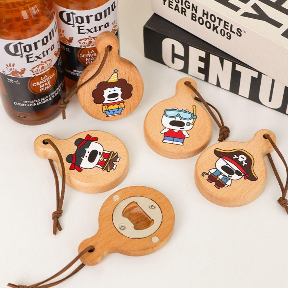 Cartoon Solid Wood Bottle Openers Magnetic with Round Handle Beer Cap Catche Refrigerator Sticker Bar