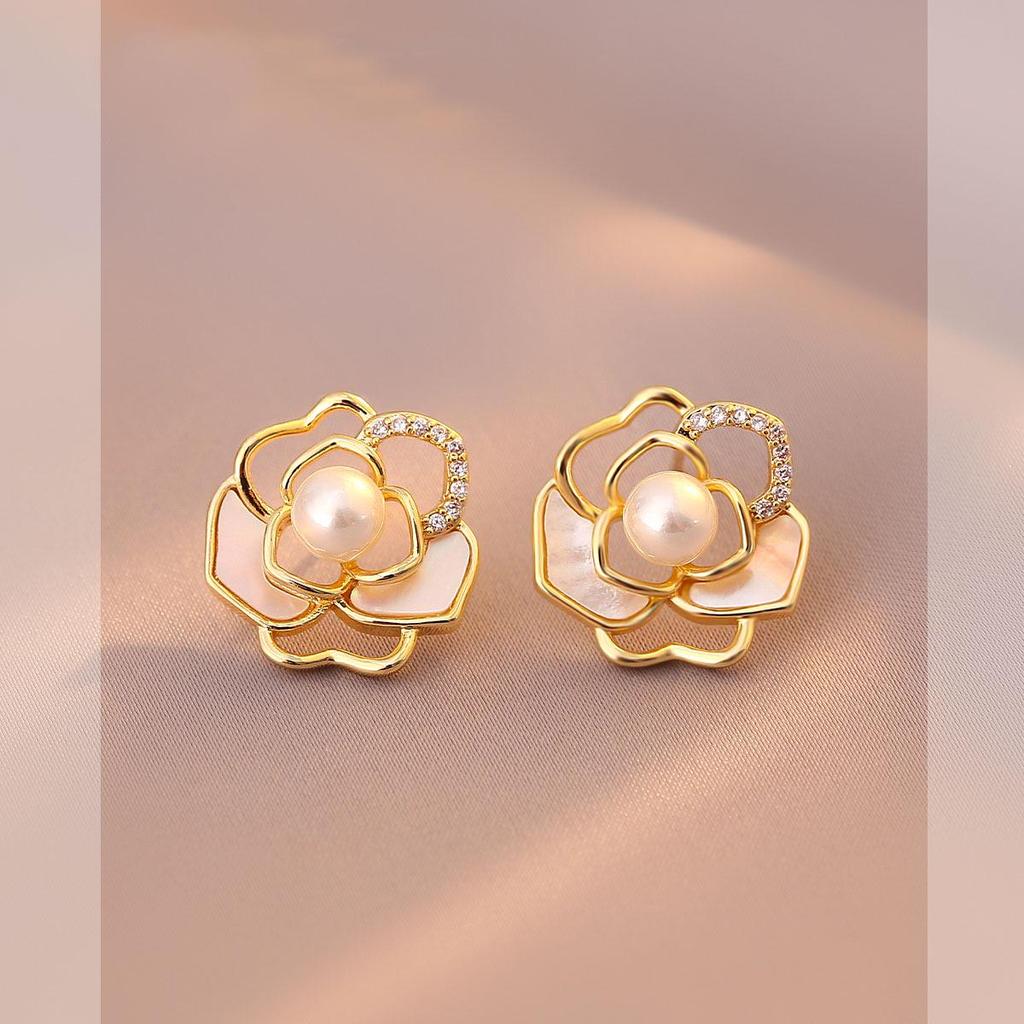 Camellia Mother-of-Pearl Drop Earrings, S925 Silver Studs for Women - High-End Luxury Design