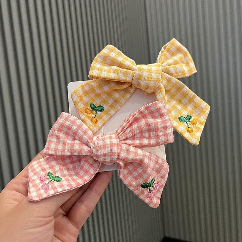 Cherry Bow Embroidered Hair Clips for Girls - Autumn & Winter Academy Style