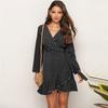Elegant Polka Dot Ruffle Wrap Asymmetrical Women Summer Dress V-Neck Full Sleeve Sexy