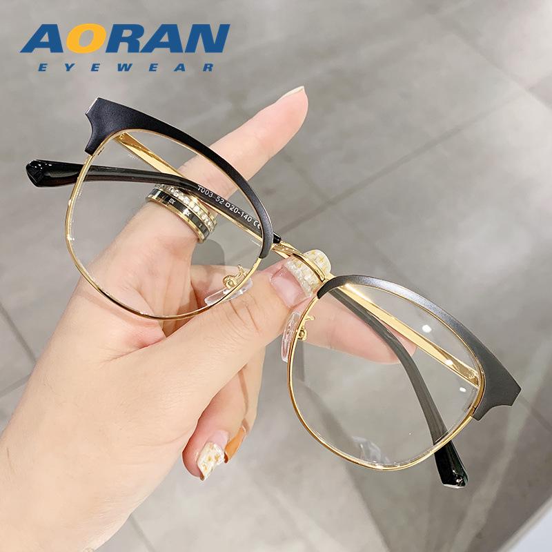 Men's Semi-Rimless Anti-Blue Light Myopia Glasses with Metal Frame for Students