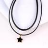Japanese-Style Harajuku Pentagram Choker - Women's Double-Layer Black Leather Clavicle Chain Necklace