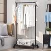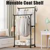 1PC Movable Bedroom Clothes Rack Floor Standing Double Rod Organizer Sheif with Bottom Shelf and Side Hooks for Coat Hat Storage
