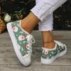 Christmas Casual Flat Baseplate Shoes Women's Large Size Santa Pattern Lace-up Canvas Shoes