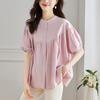 Pink Shirt for Women's Short-sleeved Summer New Loose Age-reducing Pure Cotton Top Design Chic Shirt