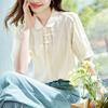 Apricot Embroidered Shirt for Women Short-sleeved Summer New Chinese Style Button Top Pure Cotton Embroidered Shirt