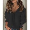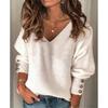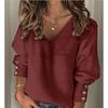 Women's Casual Sweater Pullover Autumn And Winter Loose Solid Color V-neck Knitted Sweater Tops
