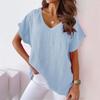 Summer New Short Sleeved V-neck Women T-shirt Solid Color Fashion Elegant Casual Office Blouse Plus Size Basic Loose Simple Tops Women's Clothing