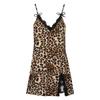 Lace Trim Leopard Nightdress V Neck Backless Side Split Slip Sleep Dress Women's Sleepwear Dresses