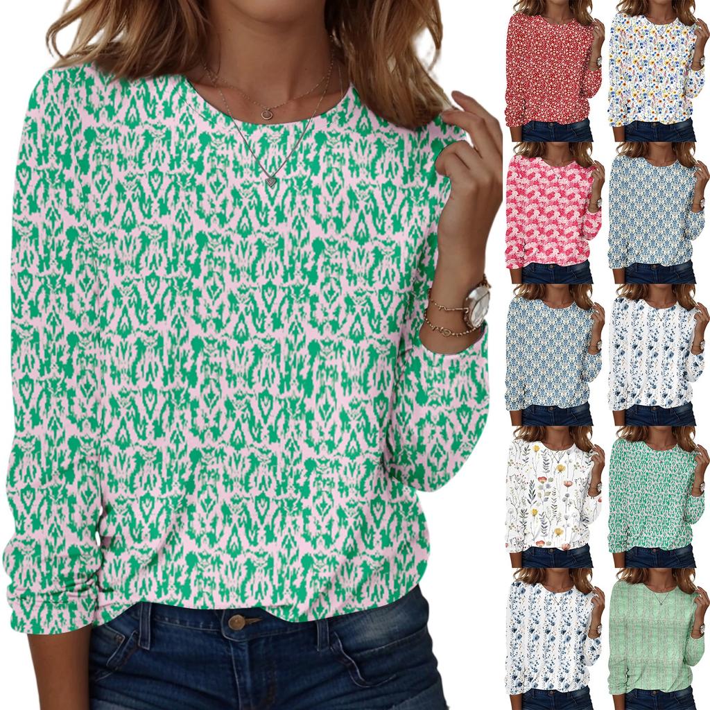 Long Sleeve Shirts For Women Cute Print Graphic Tees Blouses Casual Plus Size Basic Tops Pullover