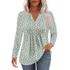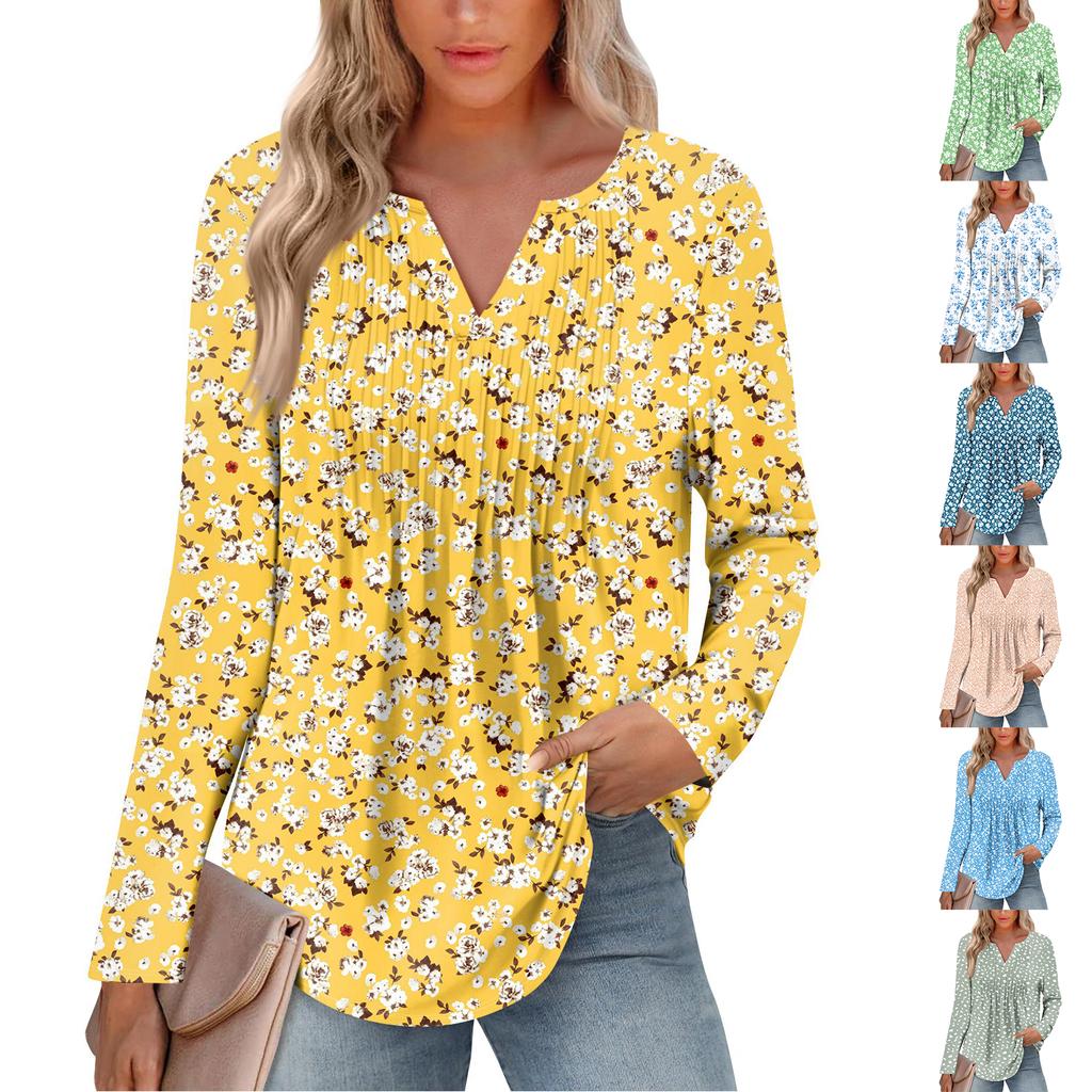 Women's Fashion Casual Pleated V Neck Solid Color Long Sleeve T-Shirt Elegant Tops