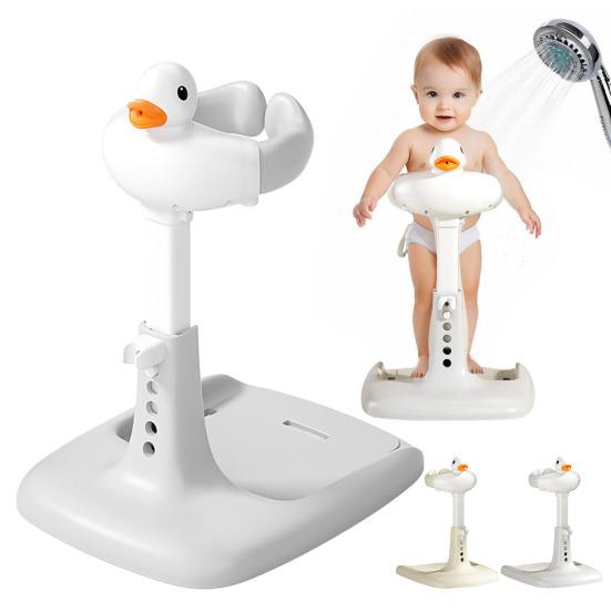 Designed with thoughtful details such as a cute cartoon duck shape that makes sounds, this baby shower rack includes a shower bracket and a small stool for added convenience. Encourage your baby to explore and enjoy bath time with this portable and practical assistant.