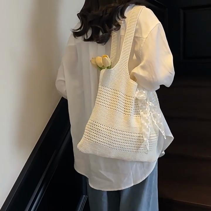 Yogodlns Summer Beach Tote Bag Women New Fashion Hollow Out Weave Shoulder Bags Female Lace Decorate Handbags