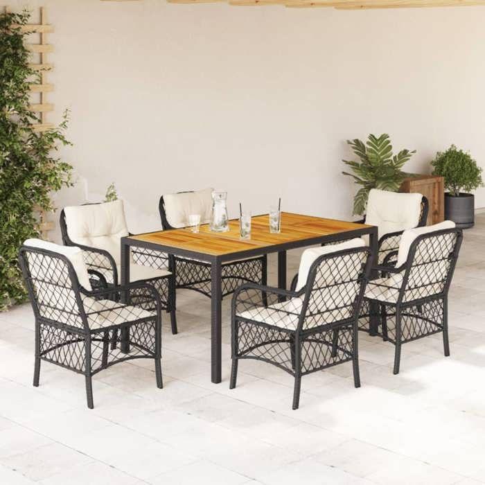 VidaXL Garden Dining Set with Cushions 7 Pcs, Patio Table and Chairs, Outdoor Furniture Terrace, Modern, 3212039