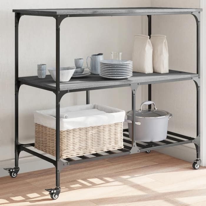 VidaXL Kitchen Trolley, Shelf with Wheels, Service Cart, Indoor Living Room Bathroom Storage Furniture, Sonoma 842309