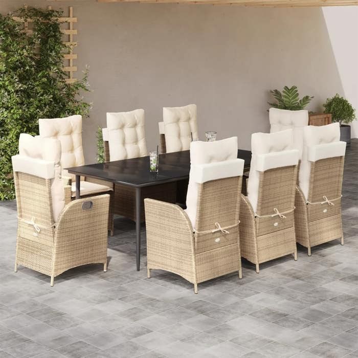 VidaXL Garden Dining Set with Cushions 9 Pcs, Patio Table and Chair, Patio Furniture, Outdoor Furniture, 3213242