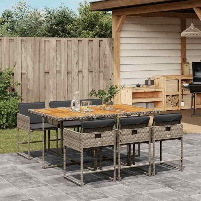 VidaXL Garden Dining Set and Cushions 7 Pcs Grey Rattan 3211274