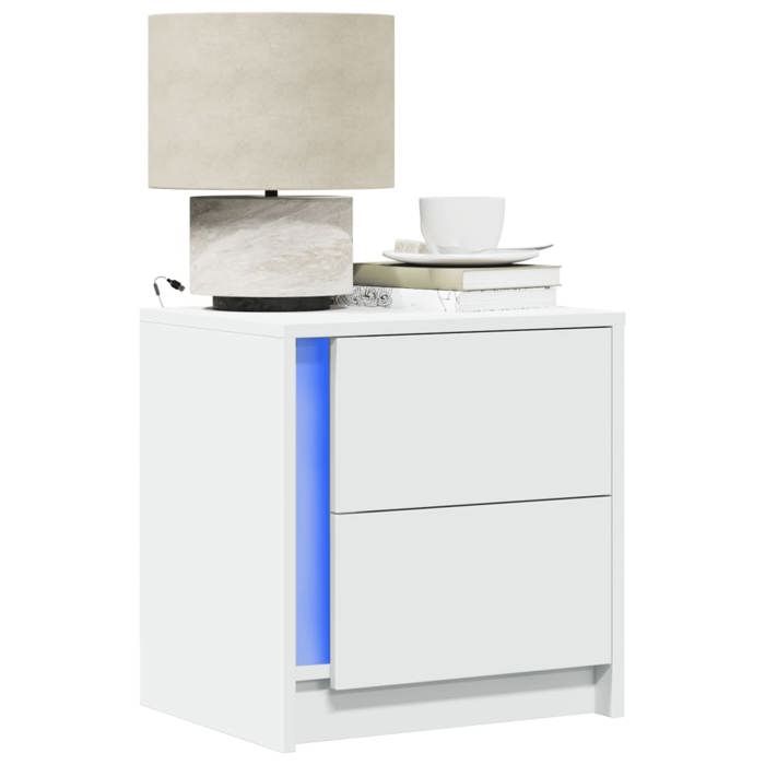 VidaXL Bedside Cabinet with LED Lights White Engineered Wood, Side Table, Bedside Cabinet, Side Table for the 852047