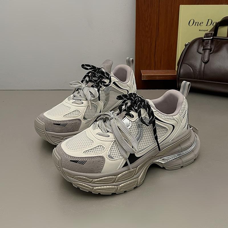 Silver Gray Thick-soled Polished Paris Women's Shoes Autumn New Heightening Mesh Casual Sports Shoes