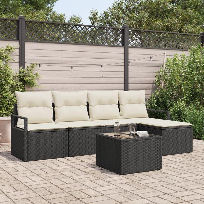Ensemble de Canapés de Jardin 5 Pièces avec Coussins en Poly Rattan Marron, Canapé de Jardin 2 Places avec Rangement 3355016