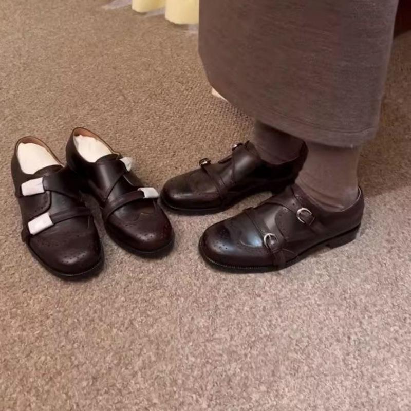 Heavy Industry Polished Hand-carved Cowhide Women's Niche Thick Heel Thick Sole Brock Small Leather Shoes Single Shoes