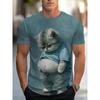 Funny Fat Cat Printed T Shirt Short Sleeve T Shirt 3D Print Fashion O-Neck Shirt Green Summer Spring Cute Clothing Apparel