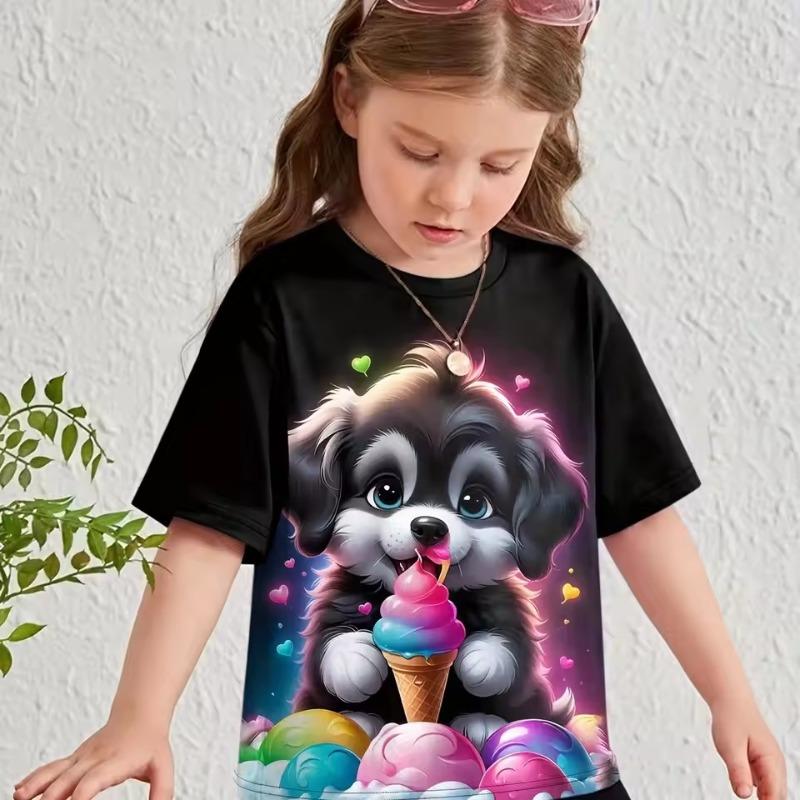 Childrens Clothing Girl Clothes Short Sleeve Girl T-Shirt Cartoon Animals 3D Print Casual O-Neck Girl Top Tee Kids Summer Clothes
