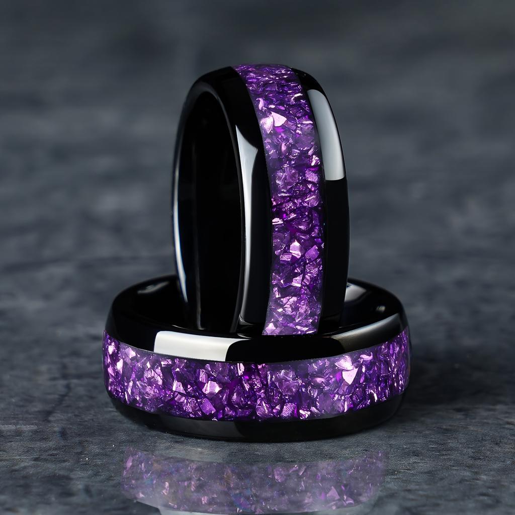Fashion 8mm Men Stainless Steel Rings Inlay Galaxy Style Purple Abalone Shell Rings For Men Wedding Engagement Band Jewelry Gift