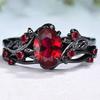 Exquisite Black Color Round Flower Red Stone Rings for Women Jewelry Anniversary Rings Gift