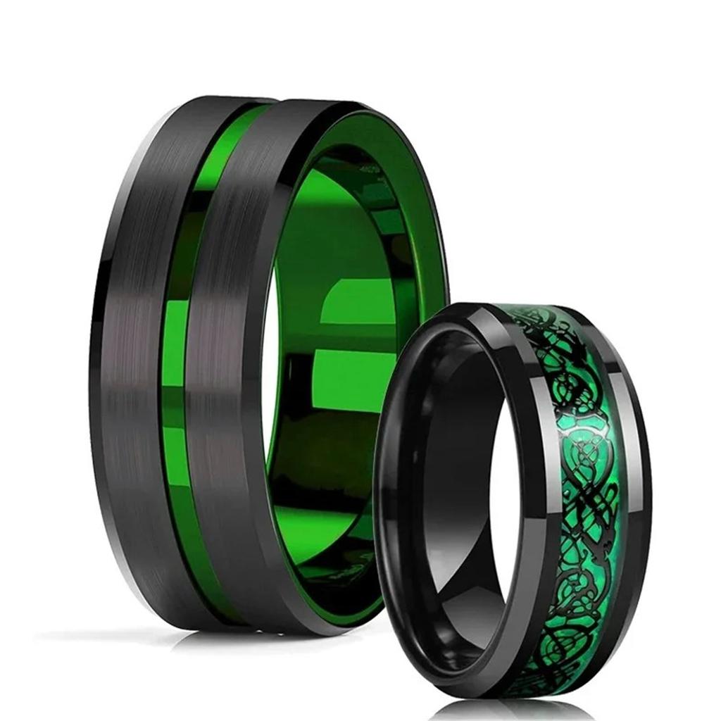 Fashion 8MM Men Stainless Steel Nordic Celtic Dragon Rings Inlay Green Carbon Fiber Rings For Men Women Wedding Party Jewelry