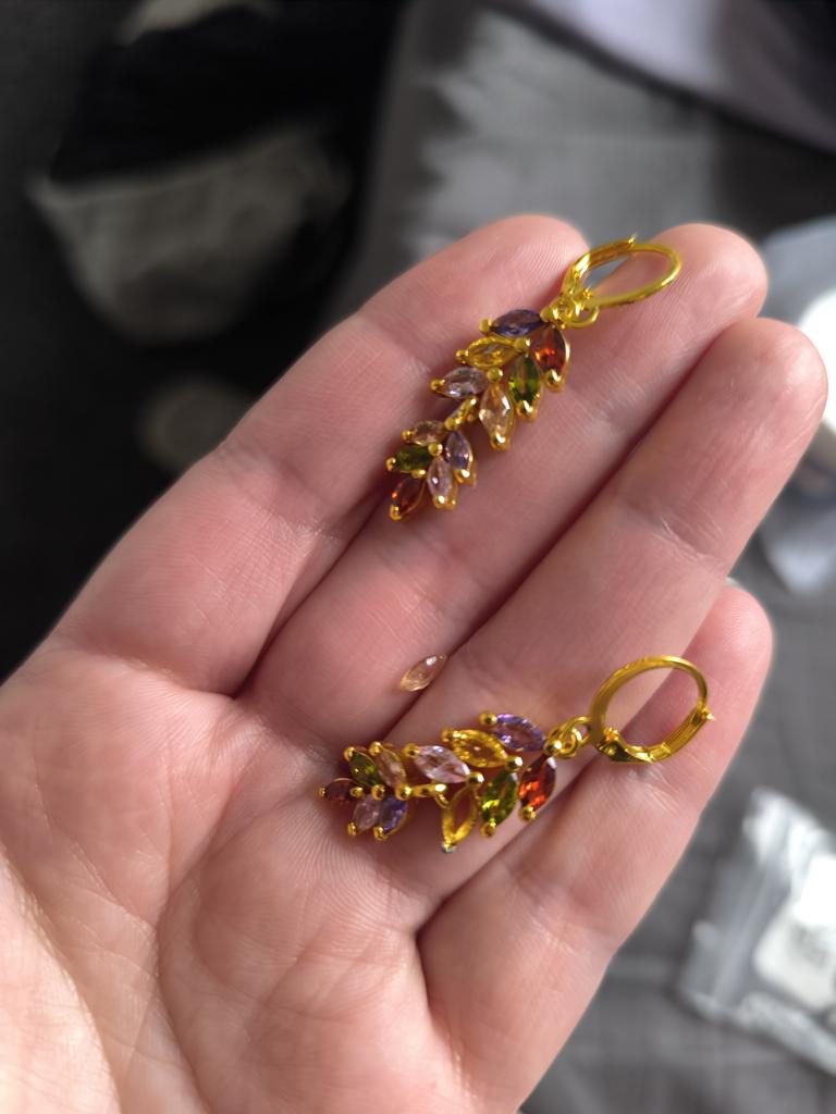 Exquisite Fashion Geometry Multicolour Stone Earrings Gorgeous Metal Gold Color Engagement Wedding Dangle Earrings for Women