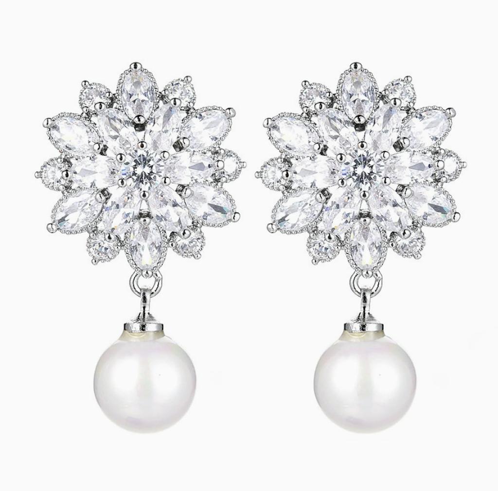 Ladies Cubic Zirconia Pearl Earrings Accessories for and Events [J's Select] Weddings, Bridal, Parties,