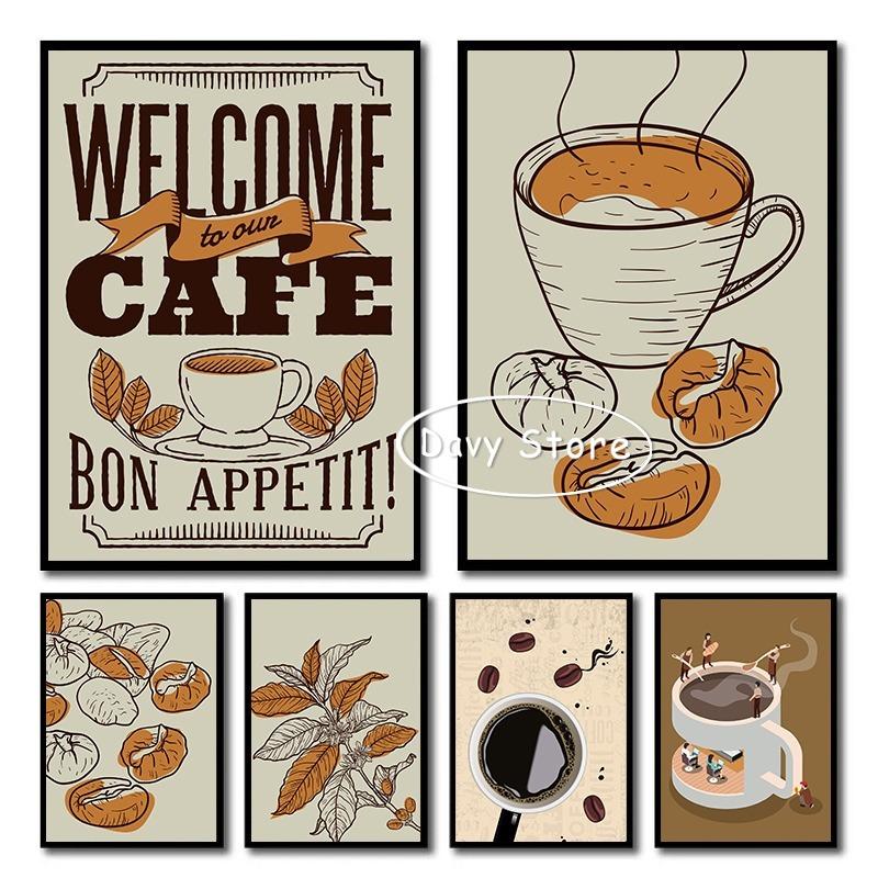 Coffee Beans Coffee Cup Espresso Poster and Print Canvas Painting Wall Art Picture for Coffee Bar Cafe Home Decor Cuadros
