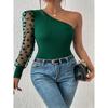 Women's New Off-shoulder Single-sleeved Polka Dot Mesh Long Sleeve Waist-hugging Slimming Women's Top T