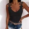 Lace Printed Monochromatic T-shirt for Women U-neck Sexy Suspender Vest Trendy Party Top Casual Lady Summer